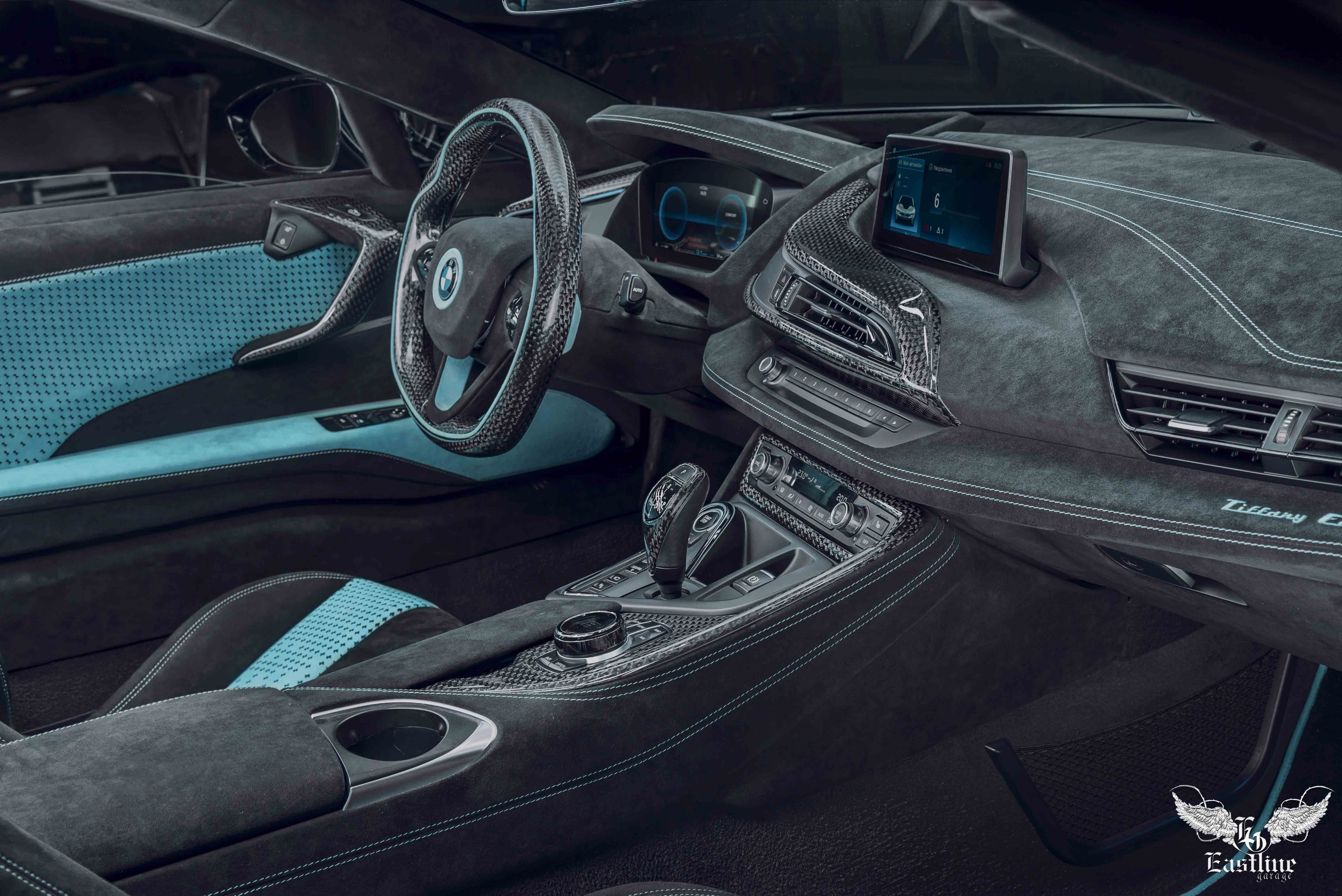 Внешность автомобиля преобразилась кардинально. И, конечно же, есть вторая, не менее захватывающая часть повествования об этом проекте. Мастера Eastline Garage полностью переделали салон i8! Изначально, как и кузов, выполненный в футуристичном дизайне, он уже требовал новой степени качества используемых материалов и соответствия новому экстерьеру.